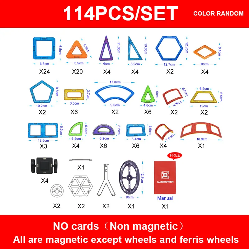 MAGBROTHER 114PCS Magnetic Building Blocks Educational Tiles Kit Magnet Designer Construction Toys