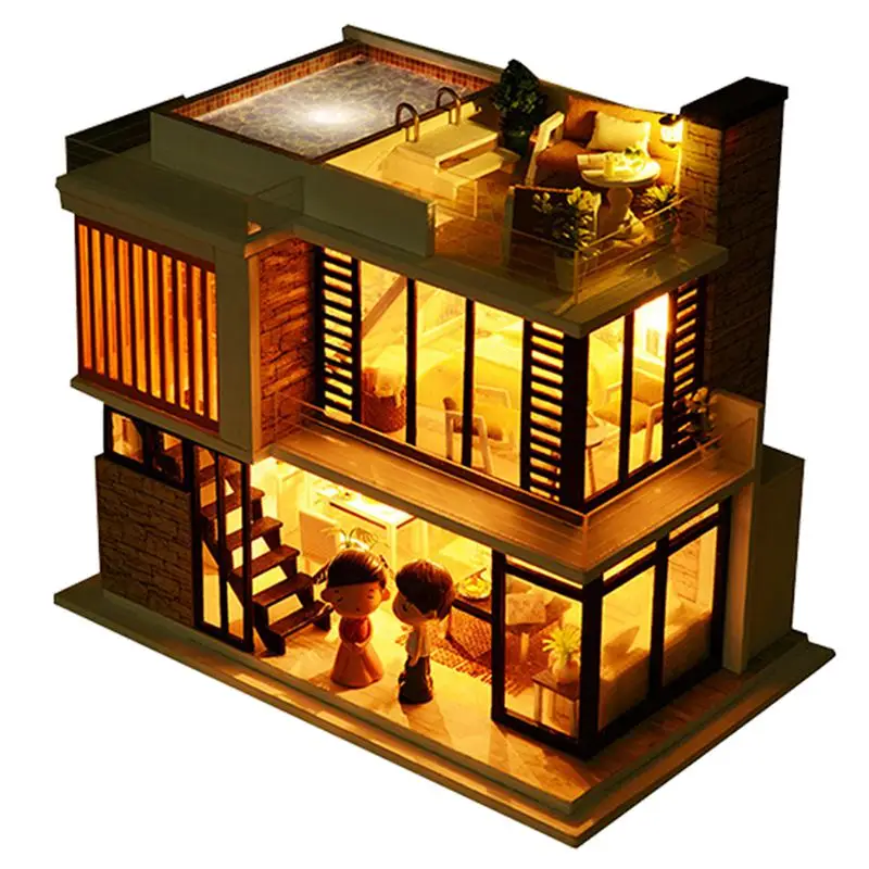 Best Doll House Diy Miniature Wooden Miniaturas Dollhouse Furniture Swimming Pool Building villa Kits To