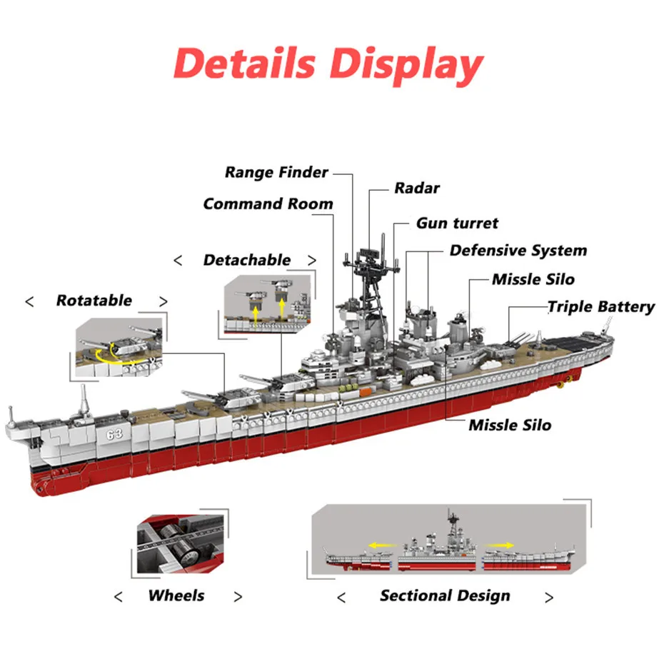 XINGBAO NEW Military Army Ship Series Classic USS Missouri Battleship Missile Destroyer Building Bl